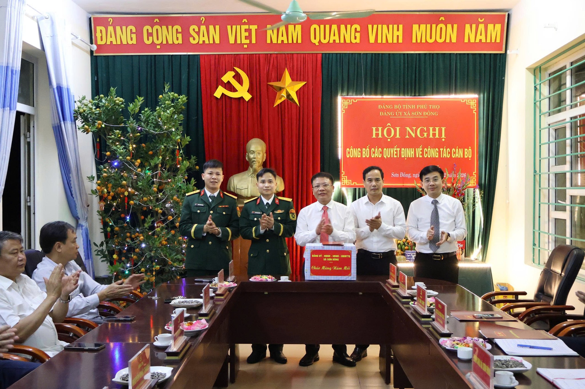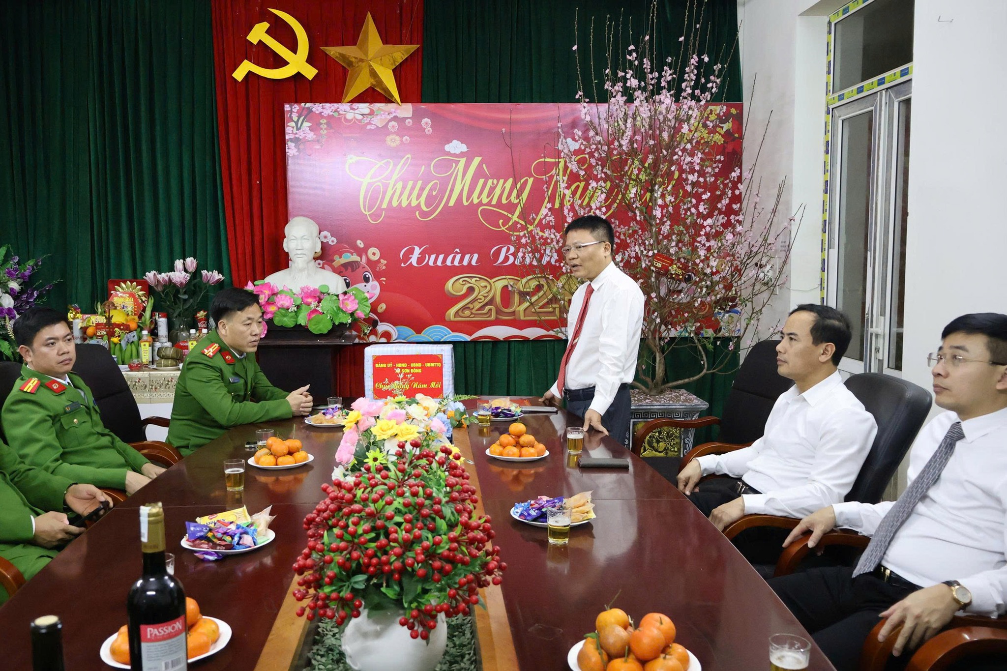 Nhân dịp năm mới, các đồng chí lãnh đạo xã đã tặng quà, gửi lời chúc mừng năm mới tới toàn thể cán bộ, chiến sĩ Ban Chỉ huy Quân sự xã và Công an xã; chúc các đồng chí cùng gia đình mạnh khỏe, hạnh phúc, hoàn thành xuất sắc nhiệm vụ được giao, góp phần giữ vững ổn định chính trị, trật tự an toàn xã hội trên địa bàn.